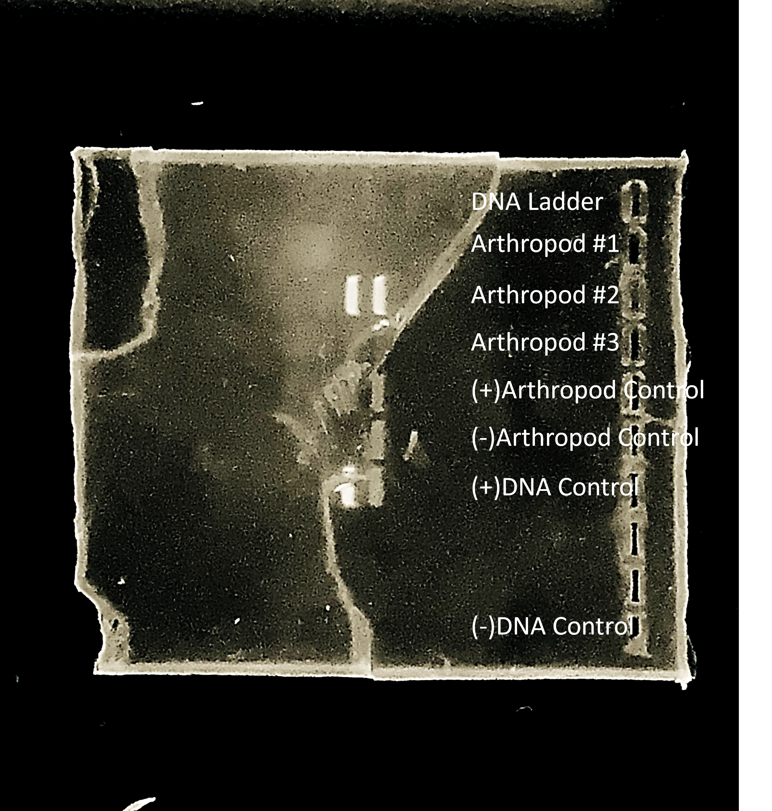 | Protocol notes | Before being placed under UV light, the gel containing the DNA of all arthropods cracked on the ground. This means that the results of these samples may be inaccurate due to contamination and leakage of DNA.