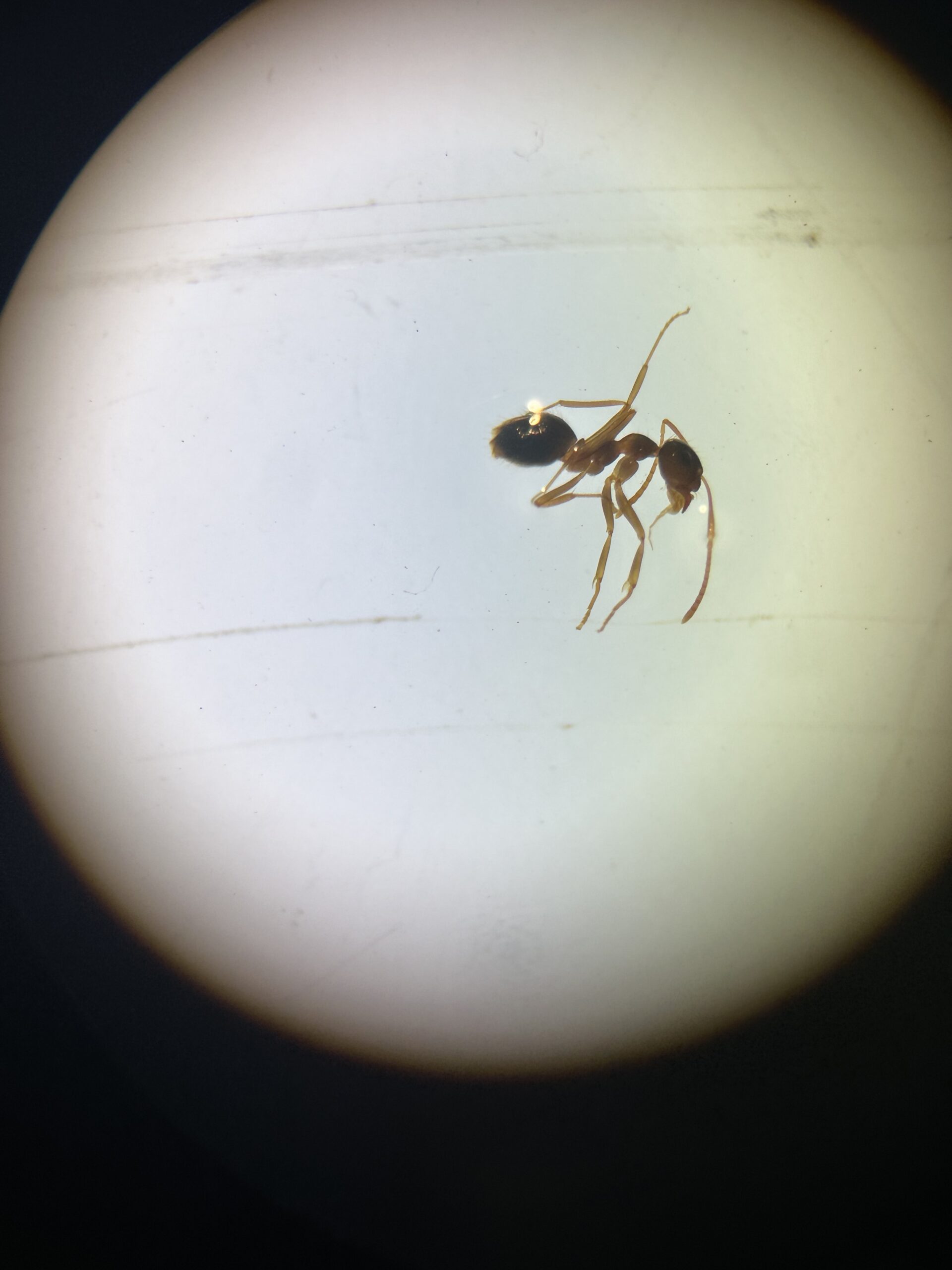 | Observations | The fire ant was crawling very quickly and seemed very active. It was hard to contain it in a container since it moved constantly. In terms of physical characteristics, its color was red and black, had a hard exoskeleton, and had 6 legs and antennas. |