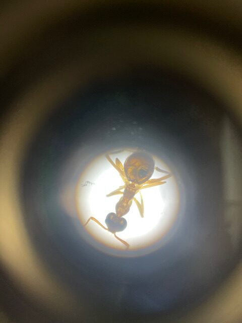 | Observations | This ant was found crawling on a tree. Under the tree there appeared to be a nest covered in leaves where other ants walked out of. |
