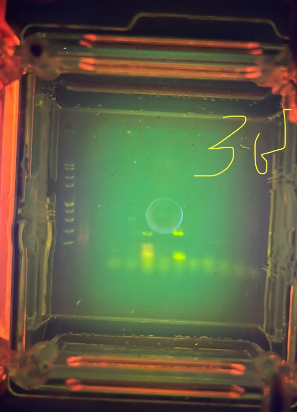 My gel electrophoresis results did not show any visible bands for either arthropod DNA or Wolbachia DNA, indicating that my samples likely did not contain a successful arthropod sequence. The absence of arthropod DNA suggests that there may have been experimental errors during the process, which could include improper or incomplete DNA extraction, pipetting mistakes, degradation of the DNA samples, or errors during the PCR setup such as incorrect reagent concentrations or thermal cycling conditions. Because neither the arthropod nor Wolbachia DNA was amplified, I cannot confidently determine whether the arthropods I tested were truly free of Wolbachia, and the results are likely due to a procedural error rather than a biological absence.