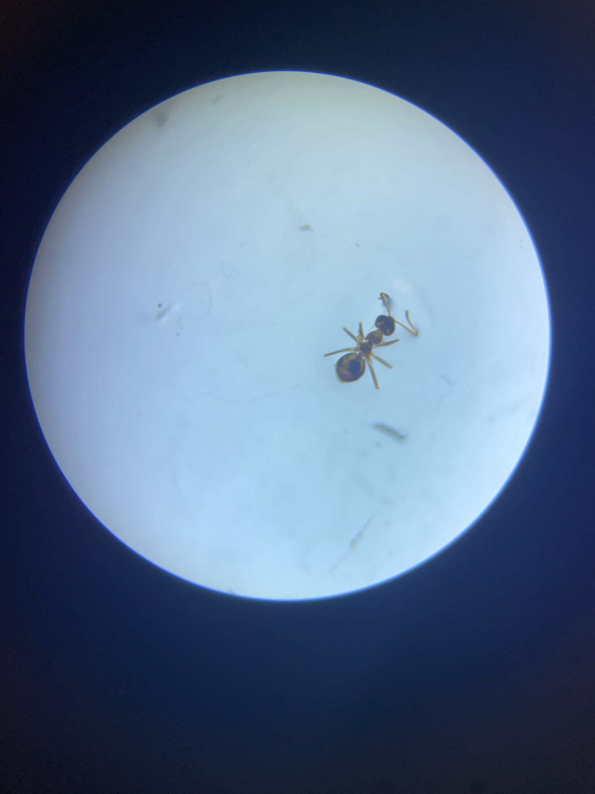 | Observations | The ant was found by a tree stump under a pile of leaves and was very small and quick moving. |