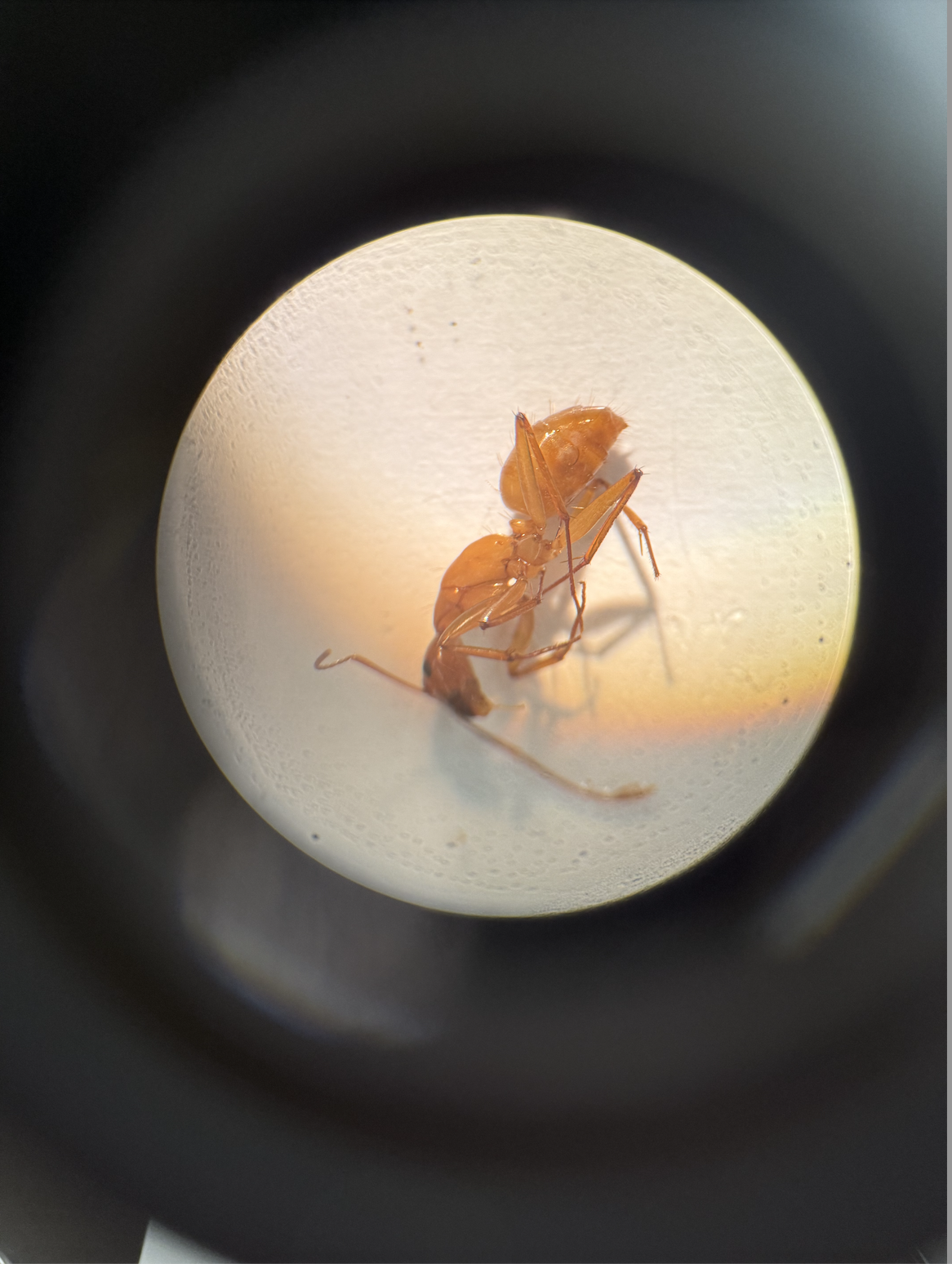 | Observations | Collected on a rock in the soil on a cloudy day, 45 deg F. Has short hair strands coming off of its body with 6 legs and 2 long antennae. |