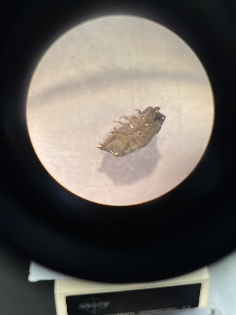 | Observations | The pill bug was found near the stream’s bend. Although the habitat was near the stream, pillbugs live on the land. It was found near the bed of the stream, underneath some of the rocks, near where it was dirty and the rock left a sort of dent in the groun.d. The pillbug appears to be somewhat rolled up, but not completely stretched out. Also, it looks to be black and brown, and its legs are curled up. |