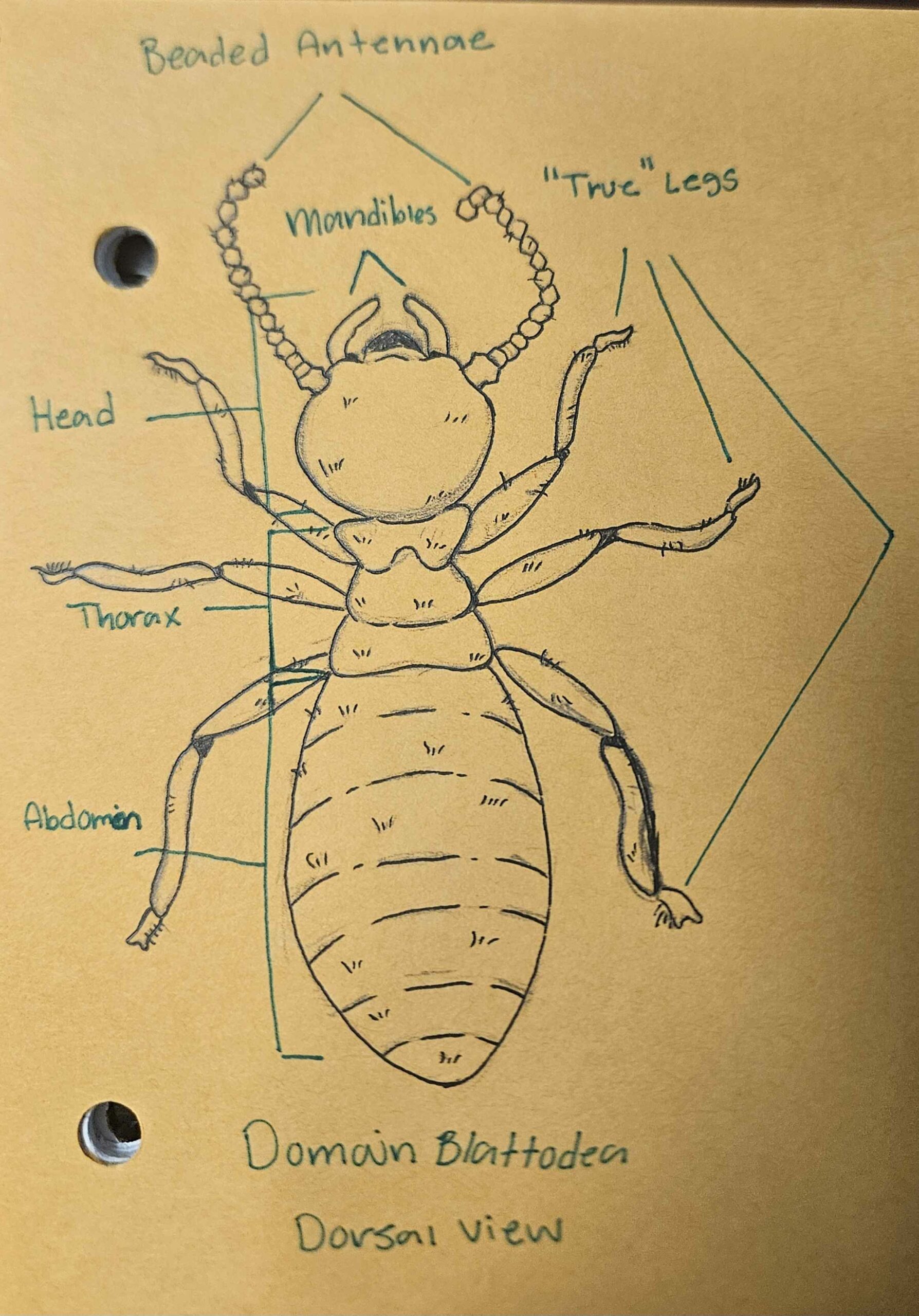 | Observations | Insect was observed to have true legs, mandibles, beaded antennae, and no wings. |
