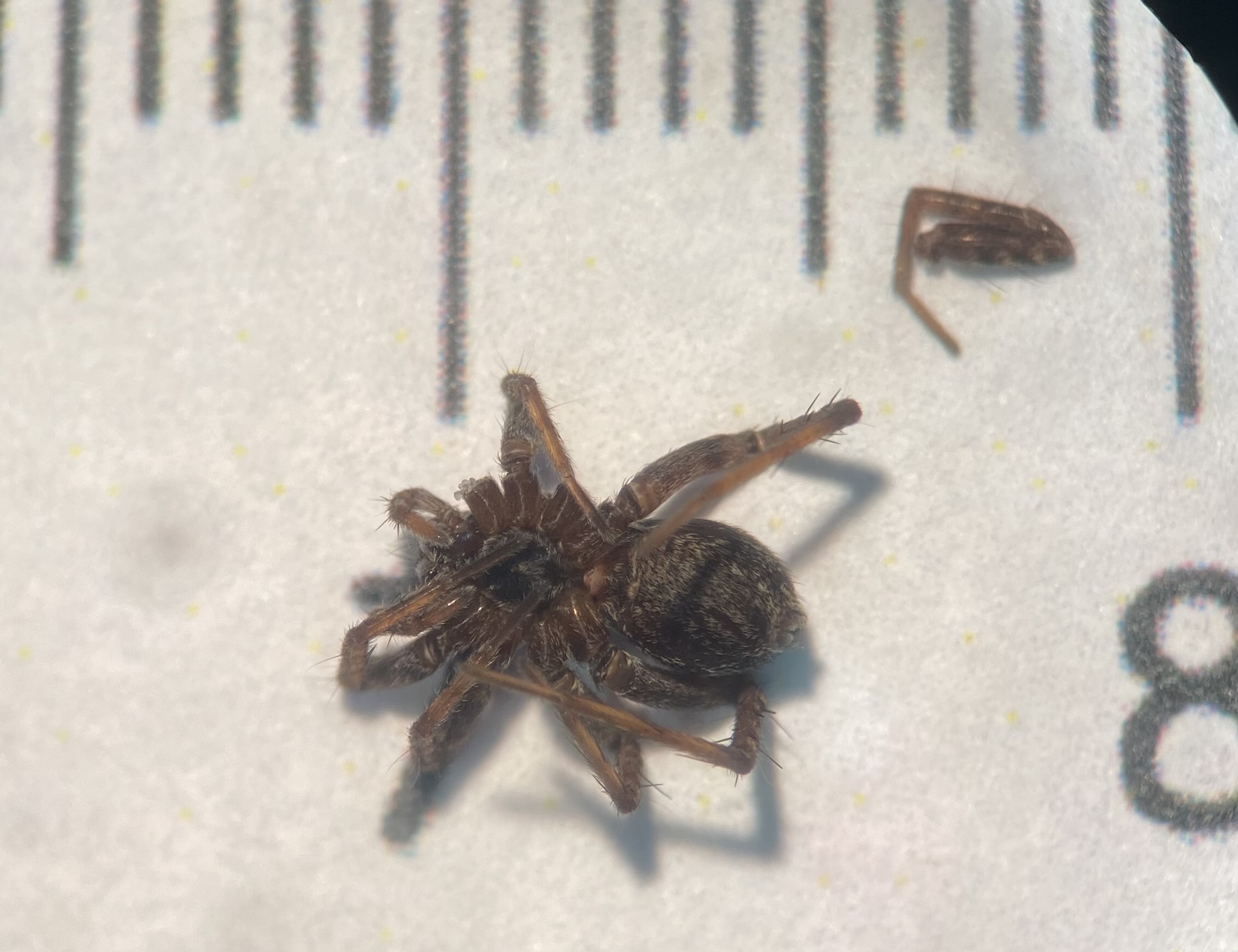 | Observations | I found this Pardosa amentata under some leaves near school. I collected it in the afternoon, about 2pm and it was sunny and about 54 degrees F outside. |