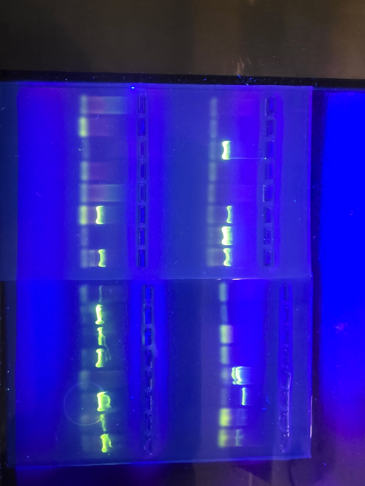 | Protocol notes | The Tegenaria tests are located in the bottom gel, rightmost column, third and seventh rows (WspecF and CO1, respectively). The shakiness of the bars in the Gel EP suggests imperfections in the gel structure, most likely during formation. |