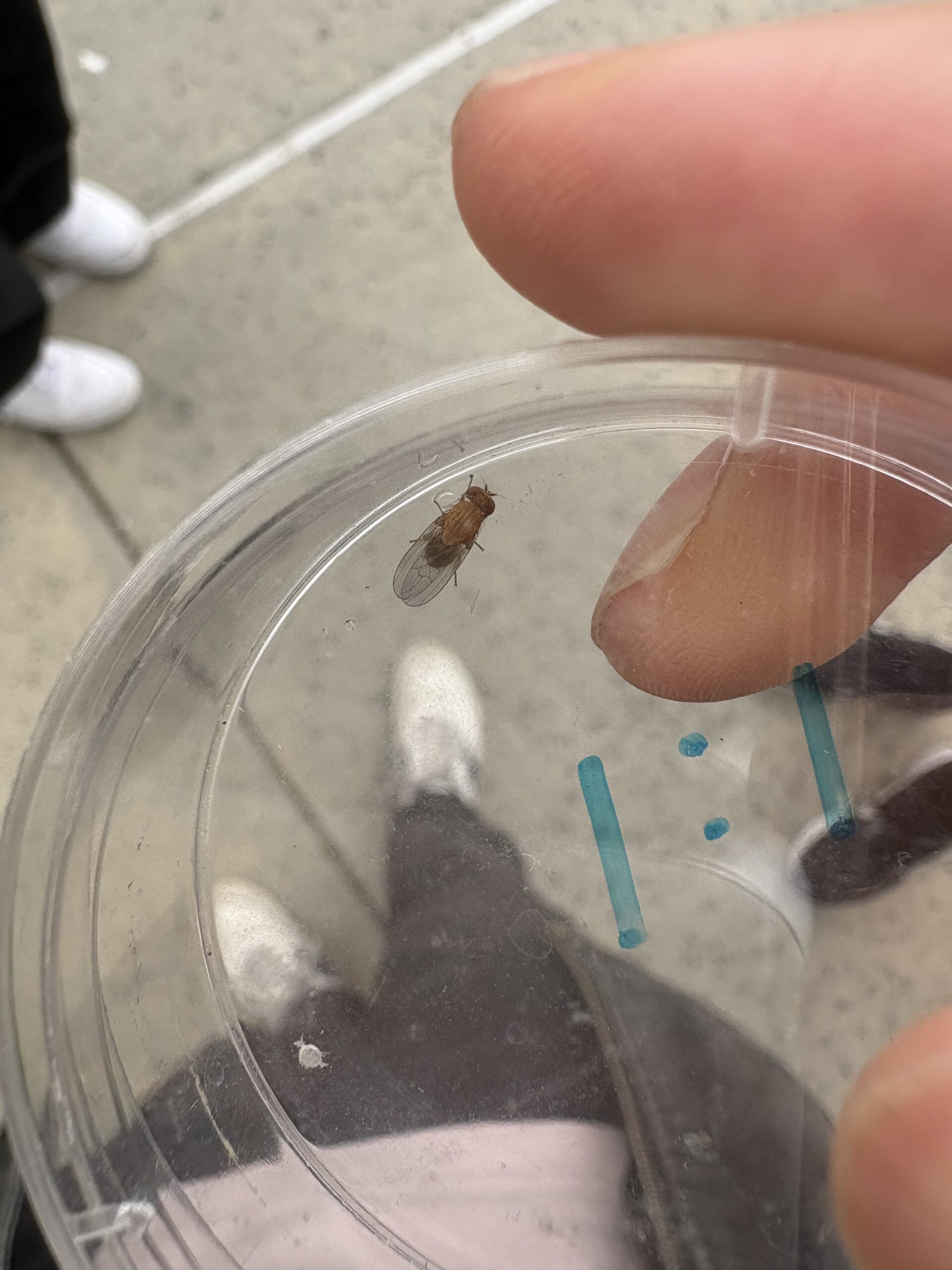 | Observations | Striped abdomen, red eyes, fly |