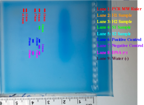 | Explanation of confidence level | Due to a possible error when performing DNA extraction, no results were visible in our gel after electrophoresis, except for the provided controls. Thus, an unsuccessful lab was performed. Out of the four Armadillidium Vulgare samples, only one had a band indicating presence of Arthropod CO1 gene, and none had any bands indicating presence of Wolbachia 16S rRNA gene. |