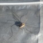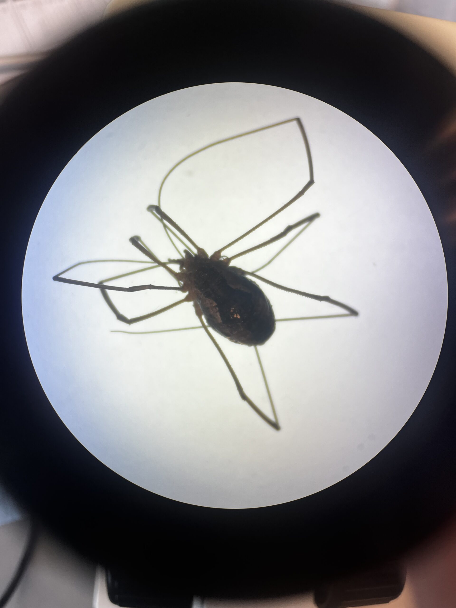 | Observations | Long skinny legs, brown, circular but small abdomen with pattern on the back |