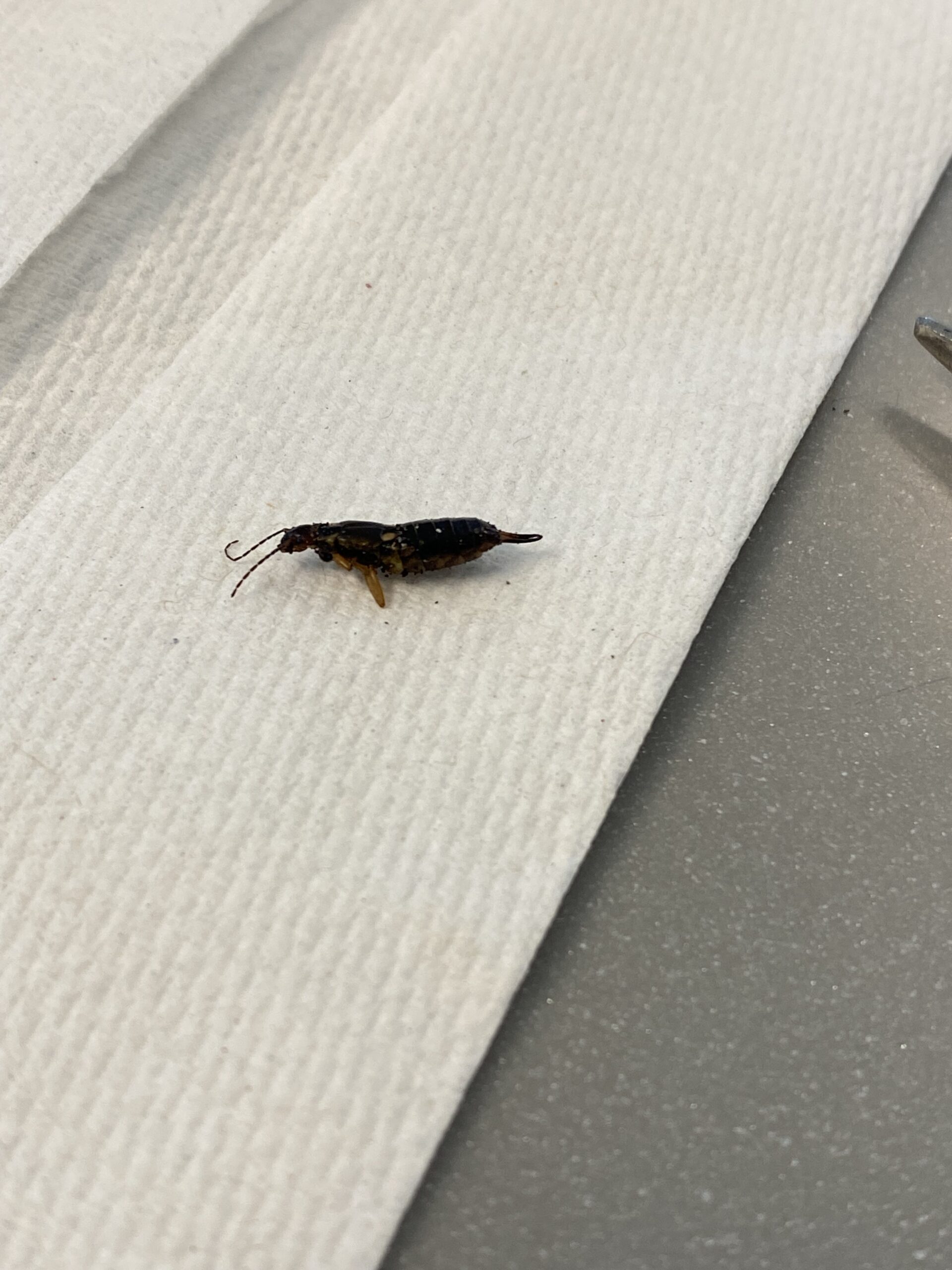 | Observations | Brown bug, hard shell/exterior, light brown limbs, pincers at rear abdomen. |