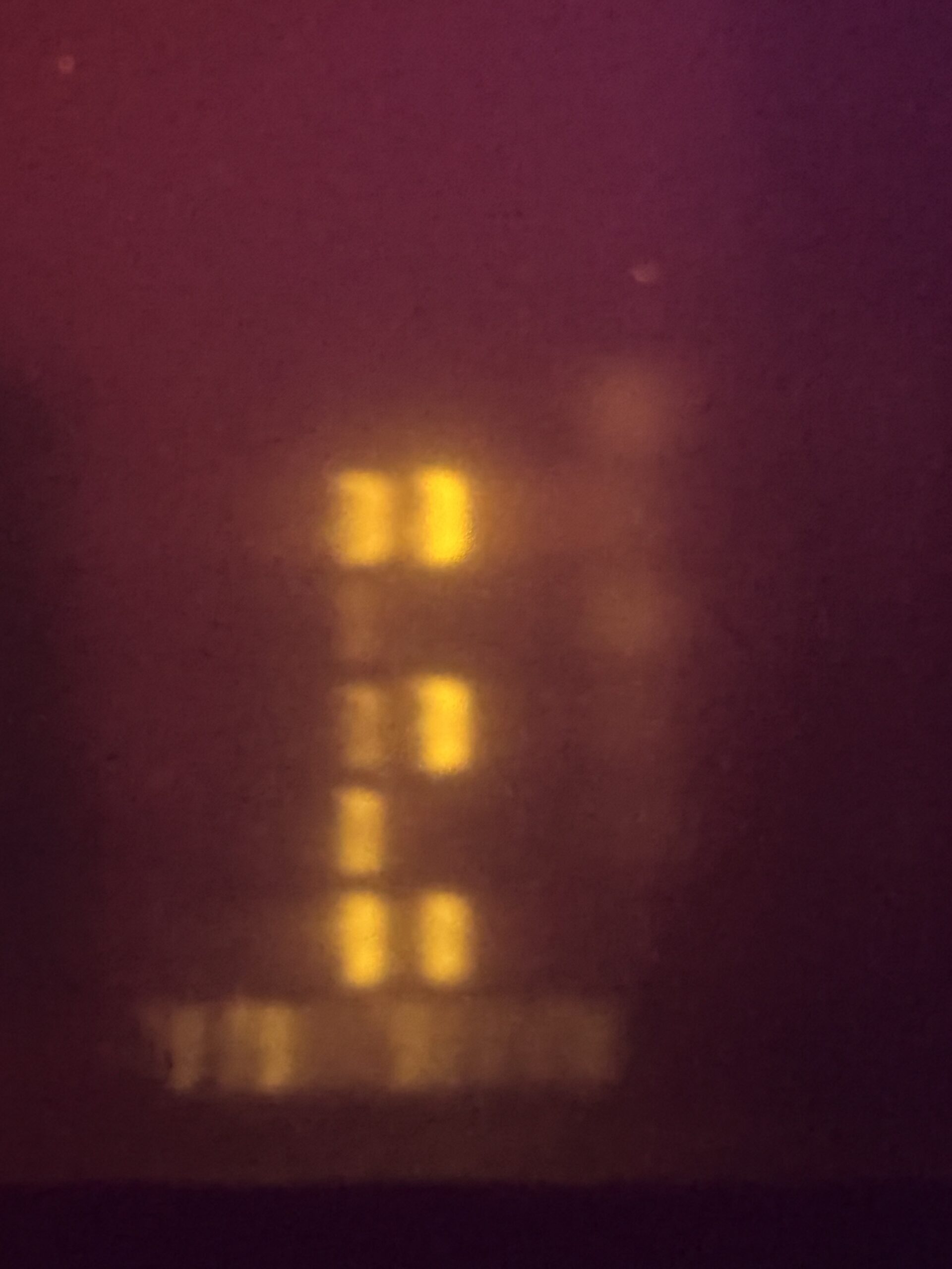 | Protocol notes | Made gel, put the DNA sequences in the spots and then allowed the electrophoresis system to run for about 25 minutes. After that we put gel under UV light and examined our bands. |