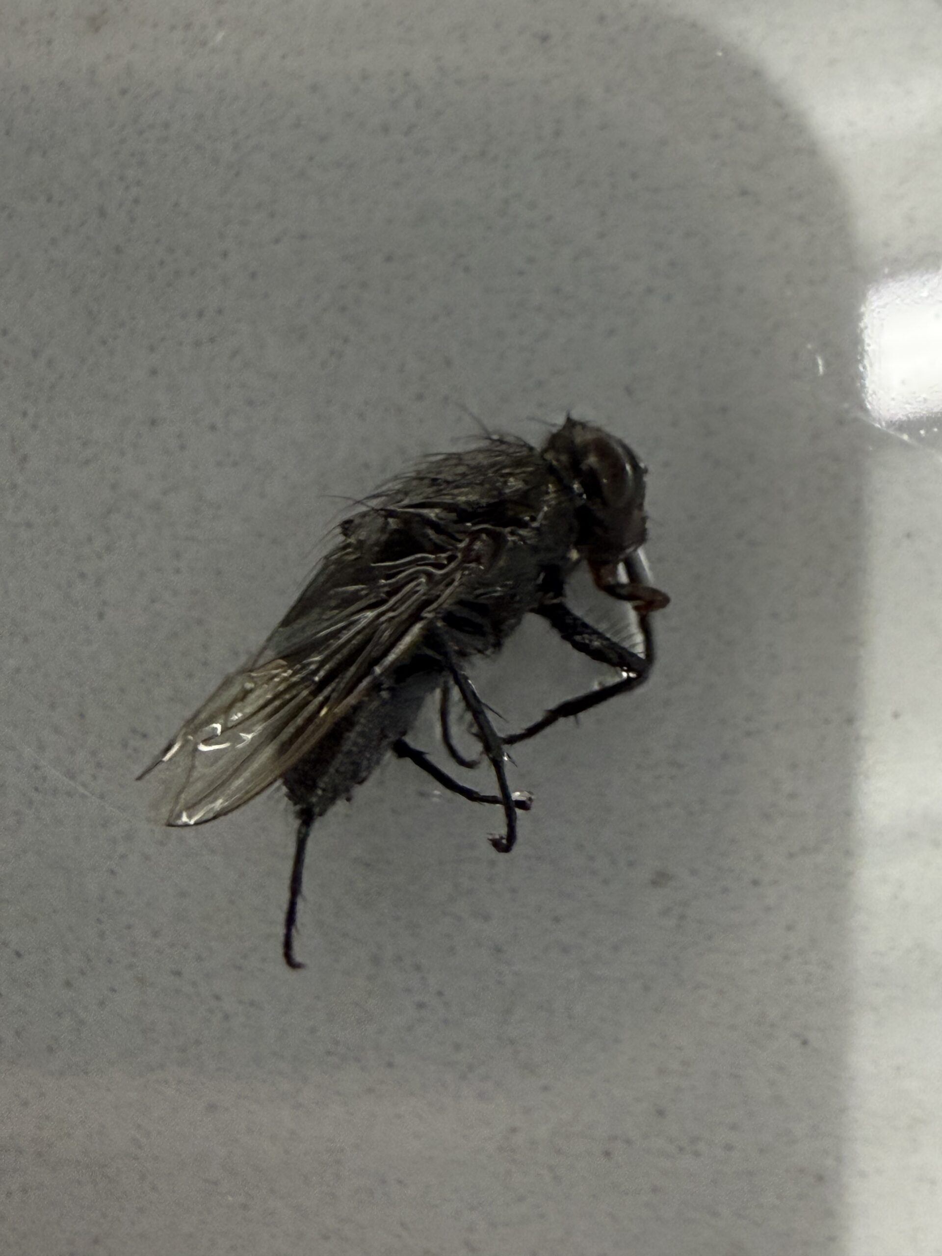 The fly was found inside a screened in porch. It was flying around the porch and kept landing on the screen.