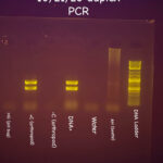 Our first gel image was taken on 10/21/25 and was run at 125 volts for 20 to 25 minutes, Used DNA Ladder: New England Biolabs 1 kb Plus DNA Ladder for Safe Stains (products # N0559S)
