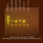 Our second PCR reaction was set up on 10/29/2025, used the same Taq polymerase as the first PCR reaction, and was a duplex reaction that used the Arthropod CO1_F&R and Wolbachia 16S_F&R primers.