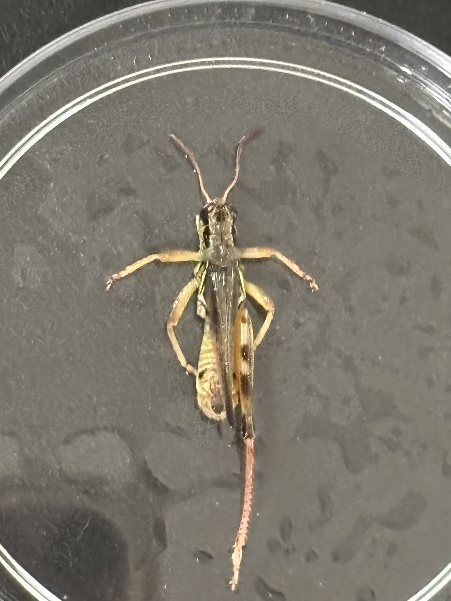 | Observations | The insect was caught at Chelmsford High School near a small pond called the science pond. The area is grassy and has abundant vegetation. The grasshopper was found in a bed of dirt and near what used to be a garden area. |