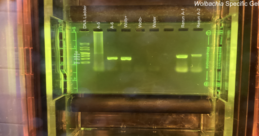 PCR: For the PCR process, we did a CO1 one and a Wolbachia one. In the overall PCR process, there was a mistake where the DNA of 2 of the 6 samples was not added for the PCR one. However, this particular sample wasn’t one of those, leading to no known mistakes for A-5.