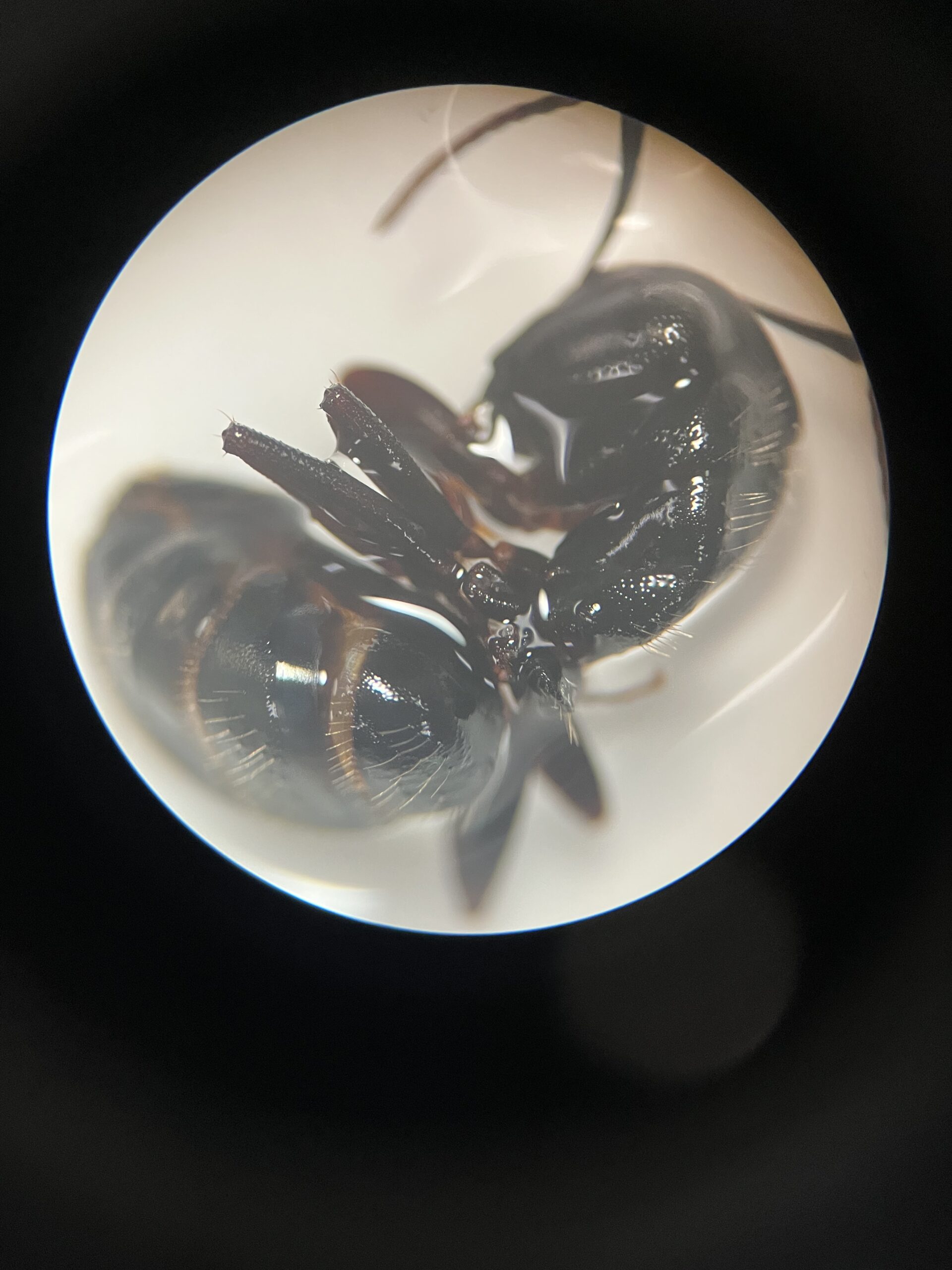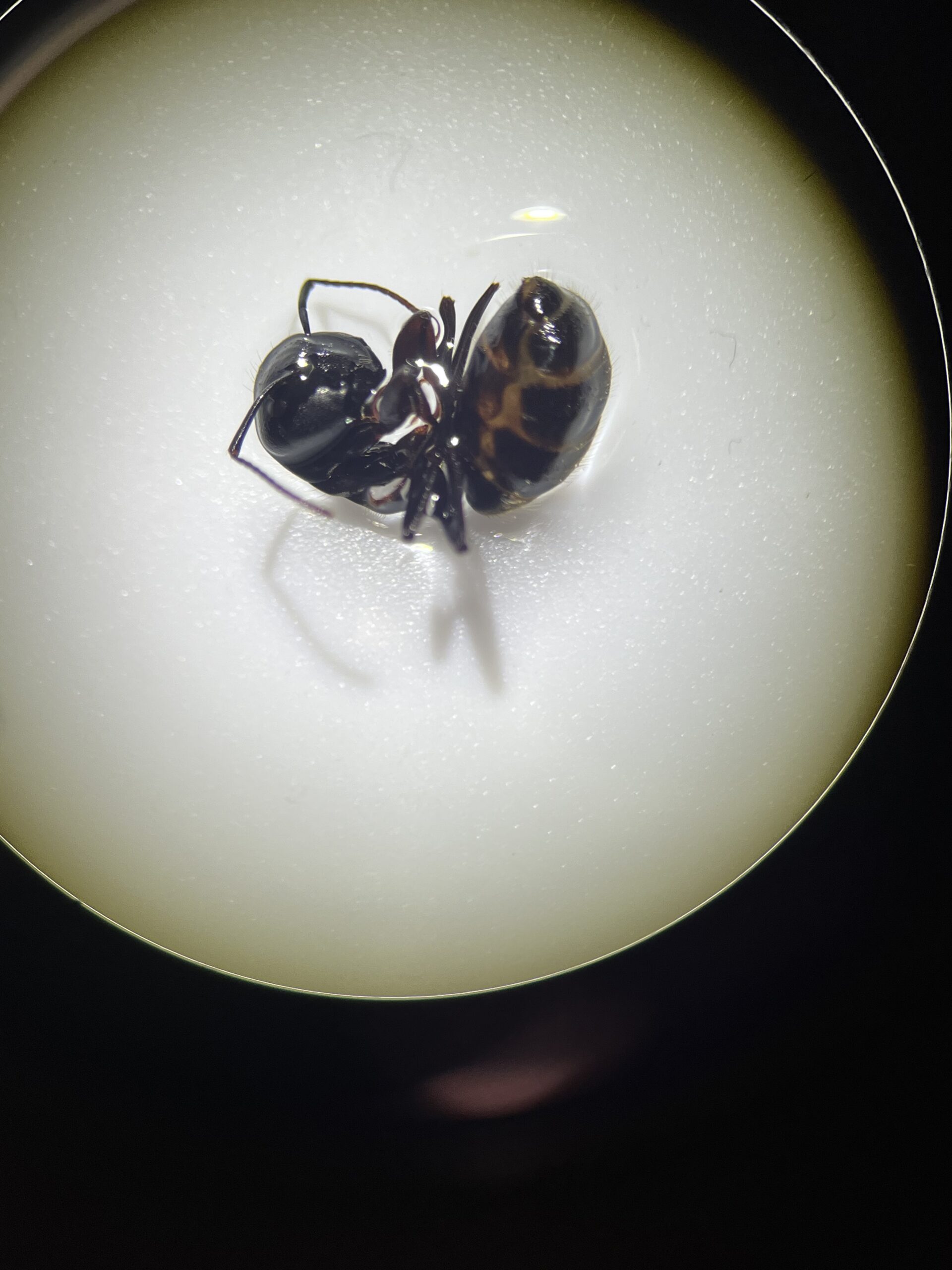 Caught the arthropod by the base of a tree in a park. Caught it nearing the first day of fall in the end of the summer. The temperature when I caught it was 74* F in a terrestrial habitat. The arthropod was some kind of ant with antenna, and it was mainly black with some brown.