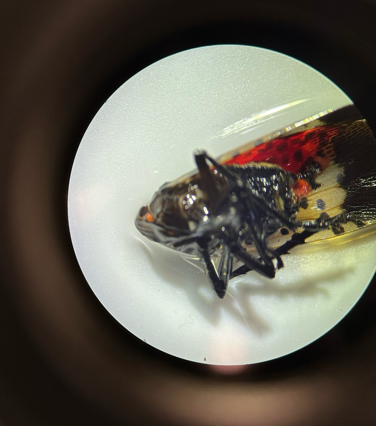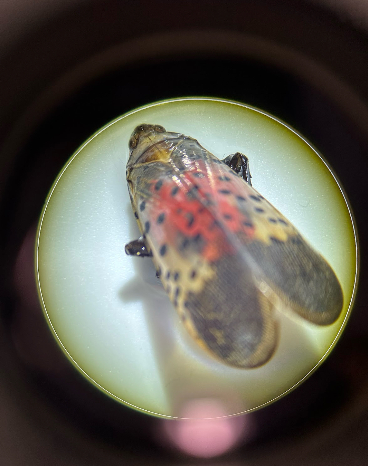 | Observations | Location Description: Specimen collected while it sat on the railing of a terrace. Season: Autumn Temperature: 79 Fahrenheit Habitat: Urban Notes: Appears to be a spotted lanternfly, has two large brownish wings, a grey body/head, and six legs.