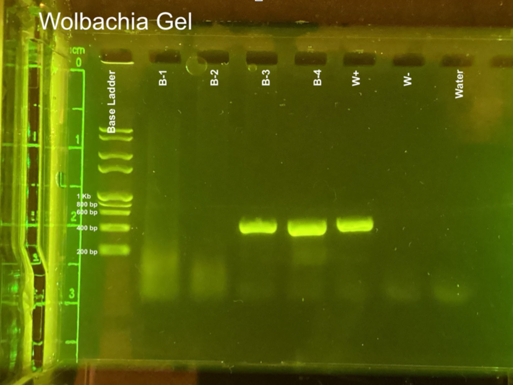 | Explanation of confidence level | No mistakes were made during our gel electrophoresis and the controls for our Wolbachia and Arthropod CO1 gels were consistent with expected results, giving our sample results confidence. |