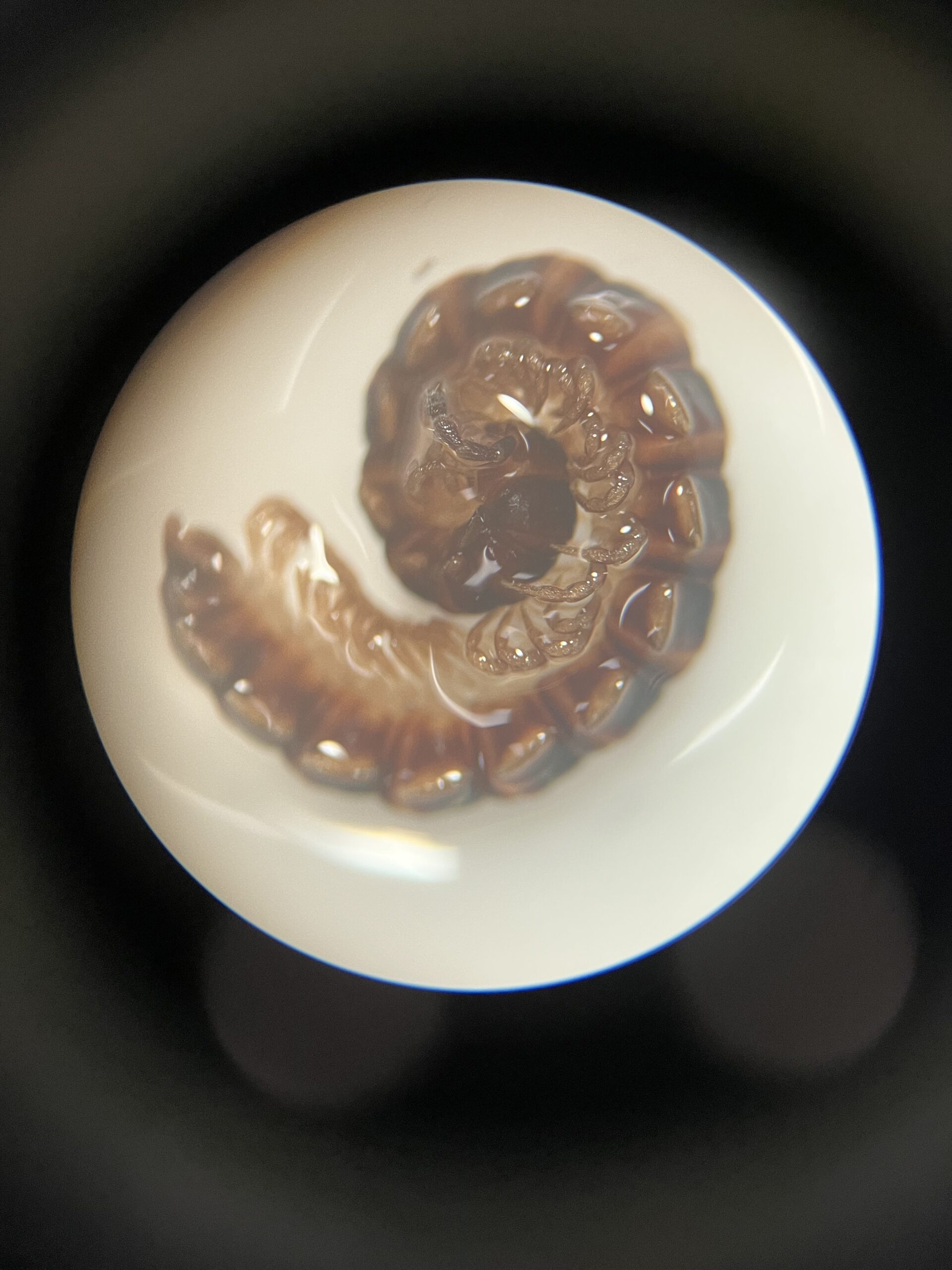 | Observations | Found underneath a rock outside. Looks to have 50+ legs. I believe it is a millipede or a centipede. Appears to have 2 antennas. Brown, black, dark tan, and shiny. Eyes not visible. Found in terrestrial habitat and caught when the temperature was 74* F. |