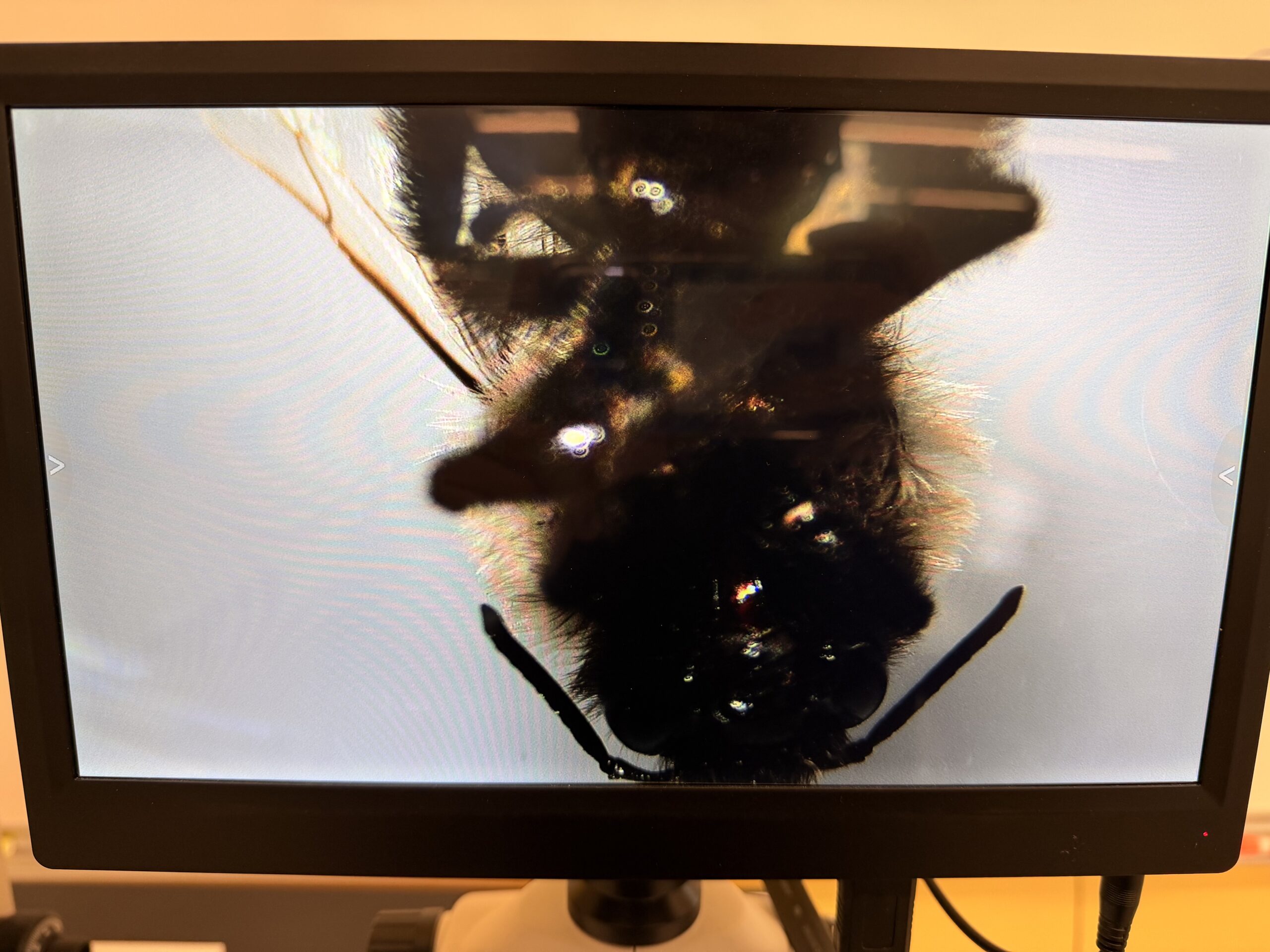 | Observations | It was extracting polen with the rest of bees, it is very fluffy under the microscope. Has wings and has 6 legs. |