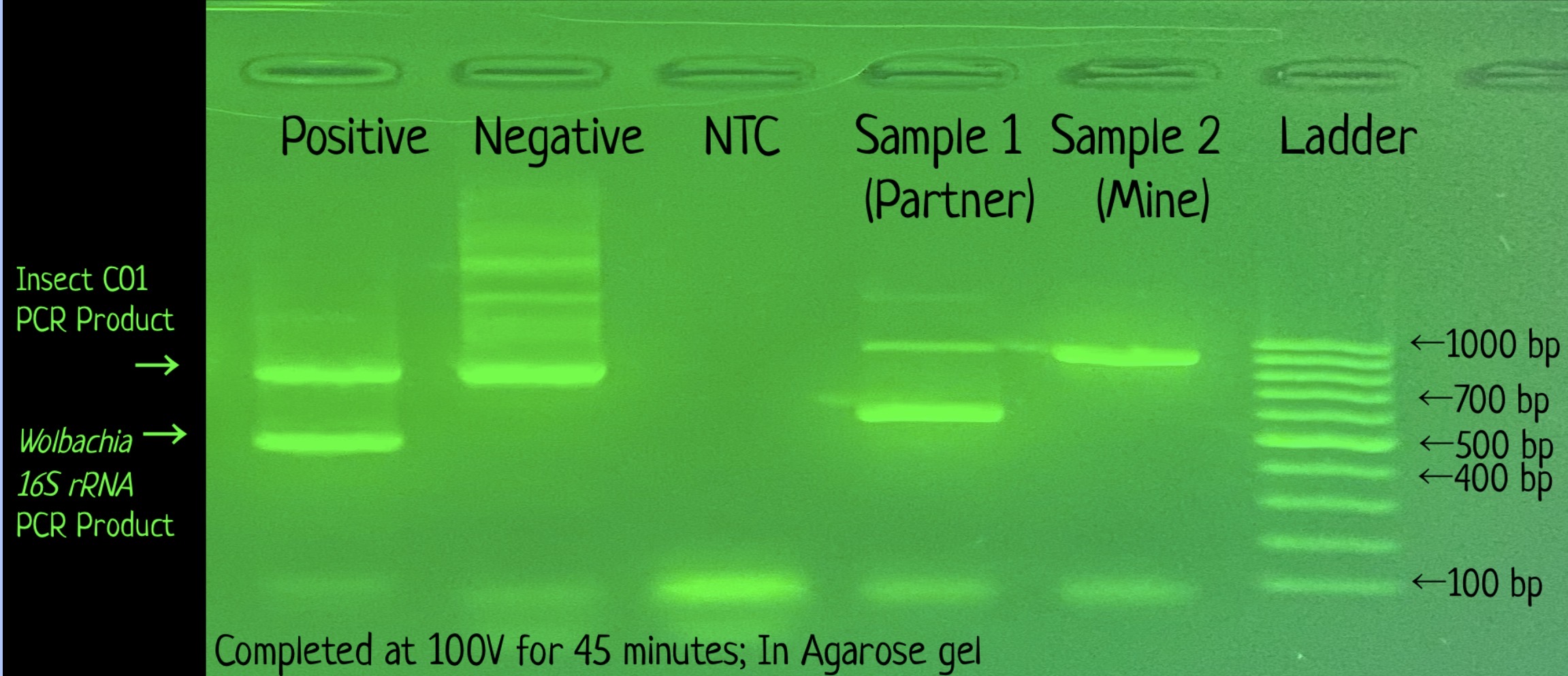 | Explanation of confidence level | My well only contained a band around the 700 bp line, and Insect CO1 PCR product ends around the 708 bp line. |