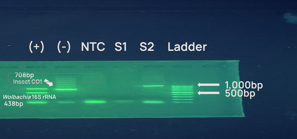 | Explanation of confidence level | I am confident that my insect was not infected with Wolbachia, because the results from the gel electrophoresis testing showed zero bands under the negative control lane. |