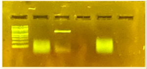 Lane 3 is CO1 for Common House spider, and Lane5 is Wolbachia specific PCR. Lanes 2 and 4 are PCR from a different spider.