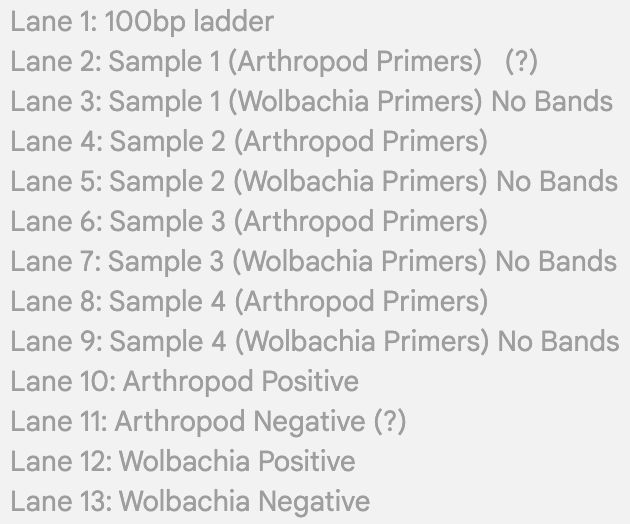 | Explanation of confidence level | Our arthropod negative control ended up showing up as positive, which could mean that there was unintentional cross-contamination during the procedure. While trying to keep that from happening to the best of our abilities, there is always going to be some possibility of unintentional contamination. |
