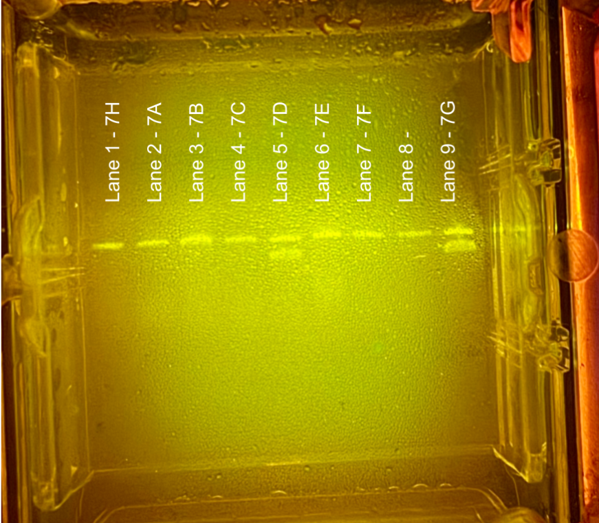 | Explanation of confidence level | All of the controls worked as expected, and although we did not run a ladder in this specific gel, our class’ data was split into two gels, and the other group ran a ladder, and it worked as expected. All of our arthropod DNA bands in the gel were exactly at the same length. Also, my arthropod DNA was in lane 2 (7A). |
