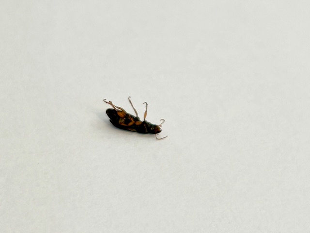 I found the specimen crossing the sidewalk. I collected it mid-day, around 12 pm. It was around 60 degrees, slightly windy, and cloudy. I attached a picture of the area where I collected the specimen. There were not many other bugs out when I collected it. |