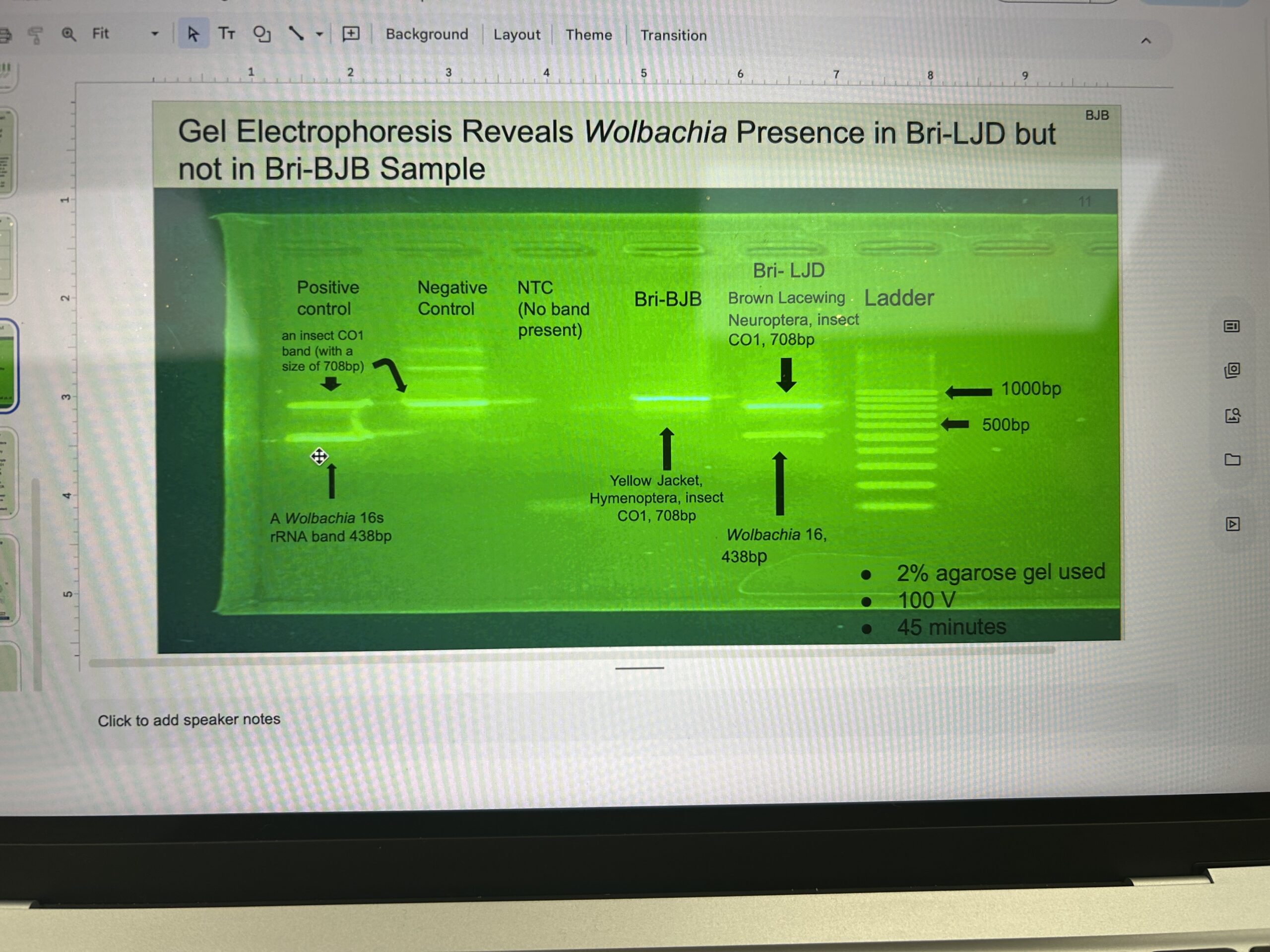 | Explanation of confidence level | Very confident, after my electrophoresis we got the results of my insect being negative for Wolbachia. |